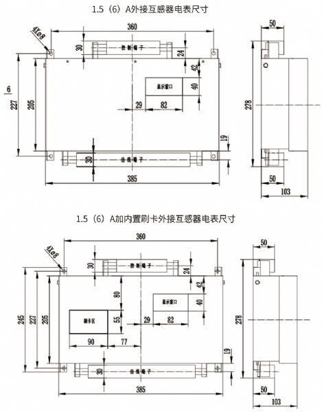 ◆ XY-85型和XY-80型工業(yè)用互感器大電流遠(yuǎn)控、遠(yuǎn)抄及刷卡多用戶電能表尺寸(單位:mm)。